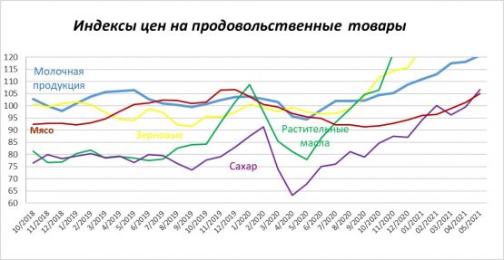 Индекс продовольственных цен ФАО – это показатель изменения за месяц международных цен на корзину продовольственных сырьевых товаров. Среднее значение Индекса продовольственных цен ФАО (ИПЦФ) в мае 2021 года составило 127,1 пункта, что на 5,8 пункта (4,8 процента) выше показателя за апрель и на целых 36,1 пункта (39,7 процента) выше показателя за тот же период прошлого года. Этот майский прирост является самым большим…